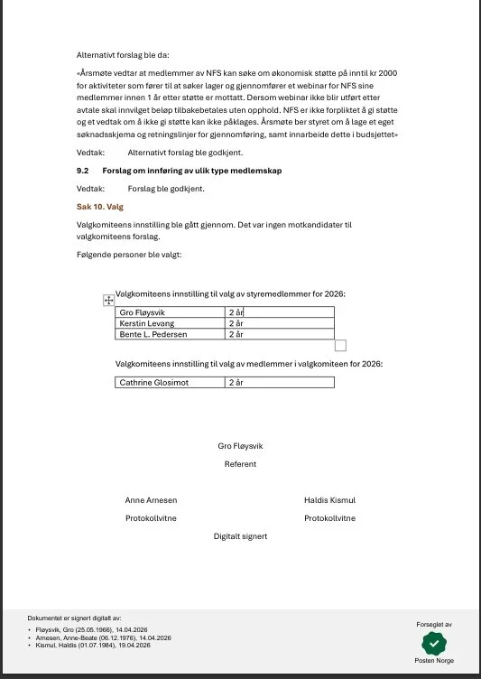 Benkeforslag under årsmøtet er ikkje tillete (§3.2), men alle medlem har høve til å sende inn forslag til kandidat(ar) til valkomiteen (solveigellingsen@live.no). Det er viktig at kandidaten er førespurt før innsending, at dei har bekrefta at dei ynskjer stille, og at det sendes med kontaktinformasjon til føreslåtte (epost og/eller telefonnummer). Forslag på kandidater må være valgkomite i hende seinast 28. februar.