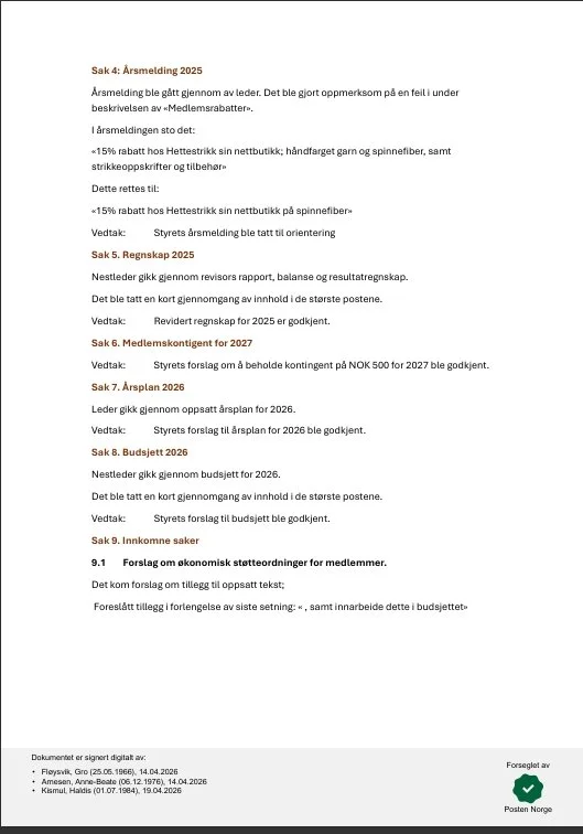 Forslag eller saker fra medlemmer skal være styret i hende/poststemplet senest 4 uker før møtedato.